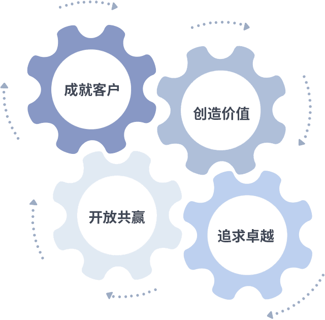 成就客户是一切决策的出发点,创造价值是衡量所有工作的标准,追求卓越是jbo竟博电竞做事做人的态度,开放共赢是jbo竟博电竞的格局也是最终的结果。价值观的齿轮环环相扣,推动着组织里的每个人不断向前。